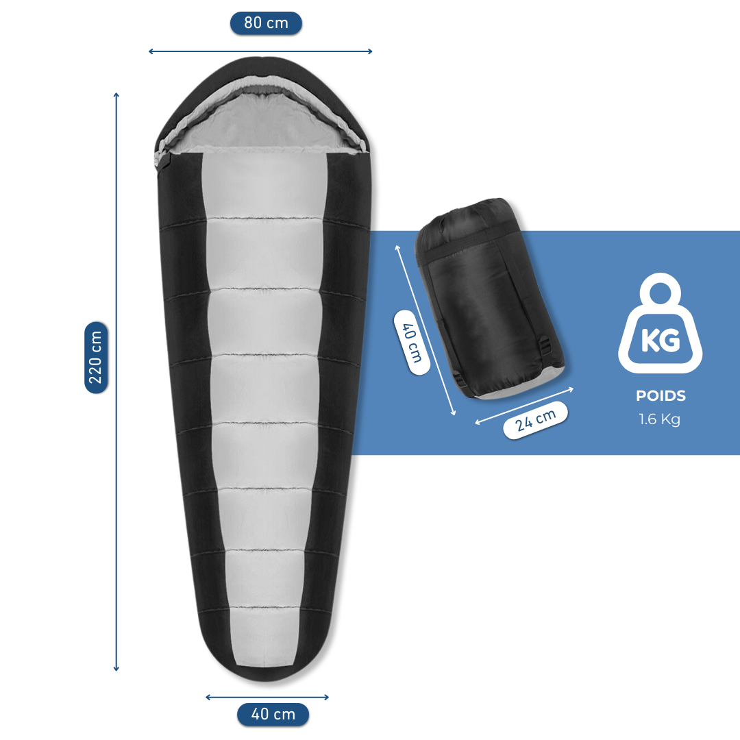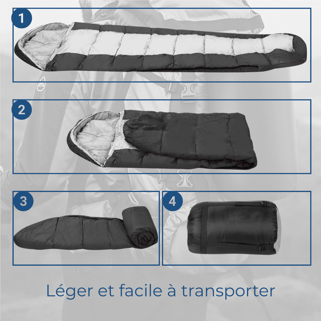 Quand la température baisse en pleine nature, le confort devient essentiel. Sa forme momie épouse naturellement le corps afin de conserver la chaleur et limiter les pertes thermiques pendant la nuit. Cette conception enveloppante crée une sensation de cocon qui aide à rester au chaud plus facilement qu’un sac de couchage classique. Que ce soit pour une randonnée, un week-end camping ou une nuit improvisée sous la tente, il apporte un confort simple et rassurant pour récupérer pleinement avant la prochaine journée d’aventure.